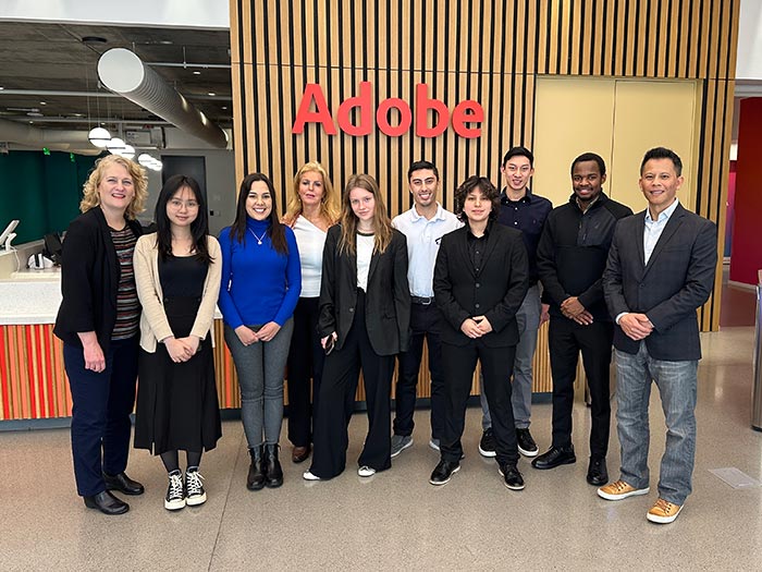 Guided by faculty, business students toured Adobe's San Jose HQ to see how product, finance, and marketing teams operate day-to-day. Adobe professionals guided students through a real-world corporate work environment, observed high-level collaboration across multiple functional teams, and addressed career-related questions. Students left the site visit with a clear understanding of how the coursework and group assignments in their classroom relate to what they observed at Adobe. Industry touchpoints like this open doors to possibilities for our students.