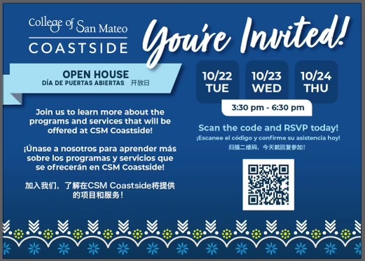 - Join us to learn more about the programs and services that will be offered at CSM Coastside! RSVP today!