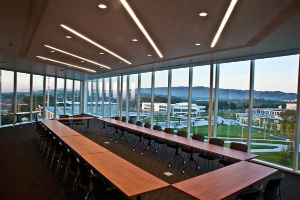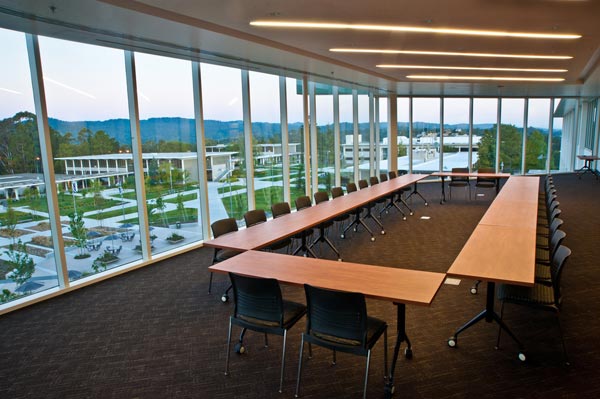 4th floor conference room with an extensive view of the campus and rolling hills of